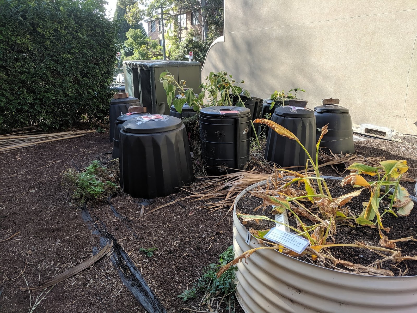 Their garden is fairly big and spacious and next to the Glebe library and comprises of a more public and a more hidden part as well as a big shed, about 10 worm farms and 12 compost bins of which two are open to the public.